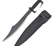 - Mâner Lemnos: Mânerul este realizat din lemn, oferind un aspect natural și o textură plăcută. Forma și detaliile mânerului imită în mod fidel designul original al sabiei.